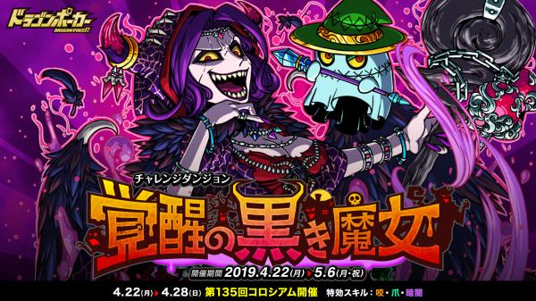 株式会社アソビズム(本社:東京都千代田区、代表取締役:大手智之)は、App Store・Google Playにて好評配信中のリアルタイム合体カードバトル『ドラゴンポーカー』で、2019年4月22日(月)より、復刻チャレンジダンジョン「覚醒の黒き魔女」を開催いたします。