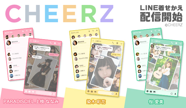 女性タレントとファンの無料ファンコミュニティサービス「CHEERZ」とLINEコンテンツ(スタンプ・着せかえ・絵文字)のパブリッシャーとして国内TOPクラスのシェアを誇るインクルーズとのコラボ企画第1弾です。「CHEERZ」にて、2019年2月13日(水) ~2月17日(日)に開催した特別イベントにてTOP3に輝いたPARADISCIELの「上枝ななみ」、劇団うわの空・藤志郎一座「染木彩花」、クリエイティブシンガーソングライターの「桜愛美」3名のLINE着せかえが登場です! LINE着せかえでは、女の子らしいふわっと可愛いデザインに、各メンバーのイメージカラーで仕上げております。