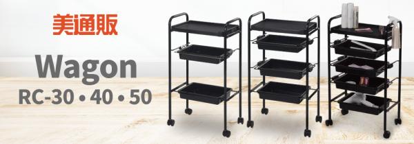 プロ向け美容材料の通信販売サイト「美通販」が、軽量・シンプル・コンパクトの定番スタイル「RC-30・40・50ワゴン」キャンペーンを開催します。RC-30は3段式、RC-40は4段式、RC-50は5段式、いずれも軽量タイプのスタンダードワゴンです。場所を選ばないシンプルなデザインと使いやすさで、理美容室からエステ・ネイルサロンまで幅広く対応できます。スマートな見た目ですが収納力も高く、お客様の視線が気なるサロンの整理整頓、施術を円滑に進めるのにも役立つことでしょう。