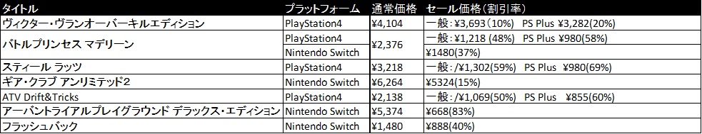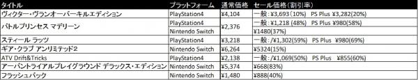 プラットフォーム 通常価格 セール価格(割引率)