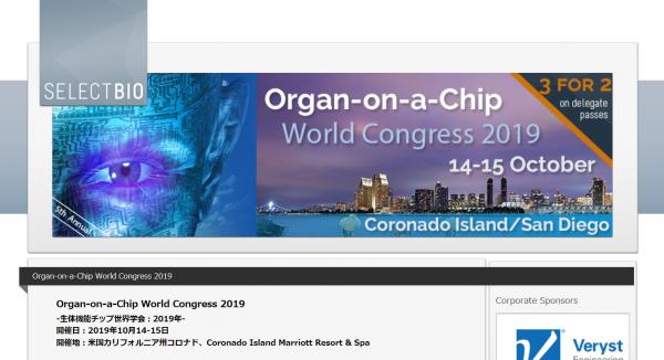 学会:「Organ-on-a-Chip World Congress 2019-生体機能チップ世界学会 2019年」
