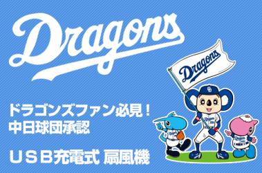 中日ドラゴンズデザインのmicroUSB充電式扇風機。
