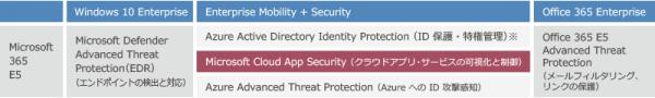 Microsoft 365 Enterprise E5 に含まれる形で提供されているサイバーキルチェーン(※2)に基づく多層防御製品(Microsoft Defender Advanced Threat Protection、Azure Active Directory Identity Protection、Azure Advanced Threat Protection、Cloud App Security など)によって、Office 365 を中心としたクラウド中心のビジネス環境をよりセキュアに利用することが出来ます。
