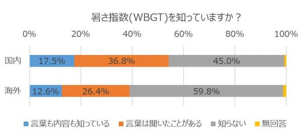3.熱中症対策に欠かせない、暑さ指数(WBGT)の認知は、国内外ともに2割弱・・・
