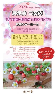 「心からほっとする健康と癒し」をコンセプトに商品を展開する株式会社ほんやら堂(本社:群馬県高崎市 代表取締役:藤永辰美)は、2019年5月14日(火)~5月17日(金)の4日間、初春商品の法人顧客向け展示会を東京ショールーム(千代田区神田小川町3-28-2 立花書房ビル302)で開催します。