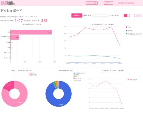 株式会社ウォークインサイト(本社:東京都新宿区、代表取締役CEO:松井康至)は、2018年4月からβ版として運営しておりました訪日外国人の国籍・動向分析サービス「TRAVEL INSIGHTS」(トラベルインサイト)を2019年5月8日(水)に正式リリースいたします。正式リリースに伴い、お客様の必要なタイミングでデータの閲覧・ダウンロードを行うことができるダッシュボード機能の公開および、気軽に始められるライトプランを含むサービスお申込み受け付けを同日より開始いたしました。