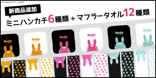 大好評頂いている「ロディ」グッズの「カワセル」限定の新商品はビビッドカラーがかわいい6種+12種類のミニハンカチとマフラータオルです!「カワセル」だから出来た、選ぶだけで楽しい多種展開となっており、お気に入りの色のRODYグッズを手に入れましょう。