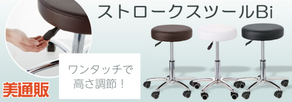 今回、ピックアップした「ストロークスツール Bi」は、「美通販」の美容機器部門でも人気の高い、サロンワークのために作られた移動式スツールです。優れた機能性と耐久性で日々の忙しいサロンワークをしっかりサポートします。