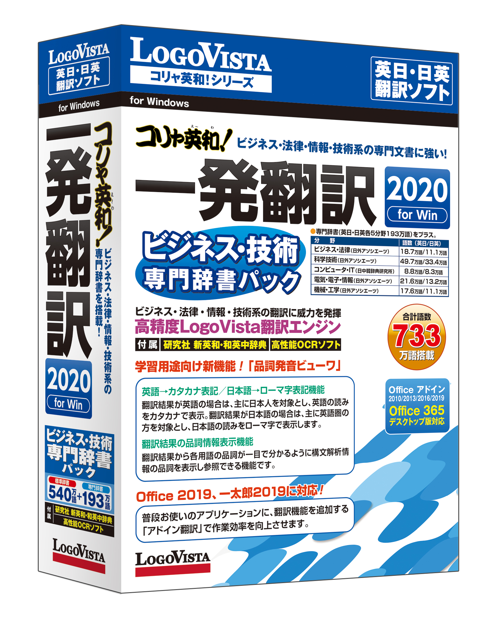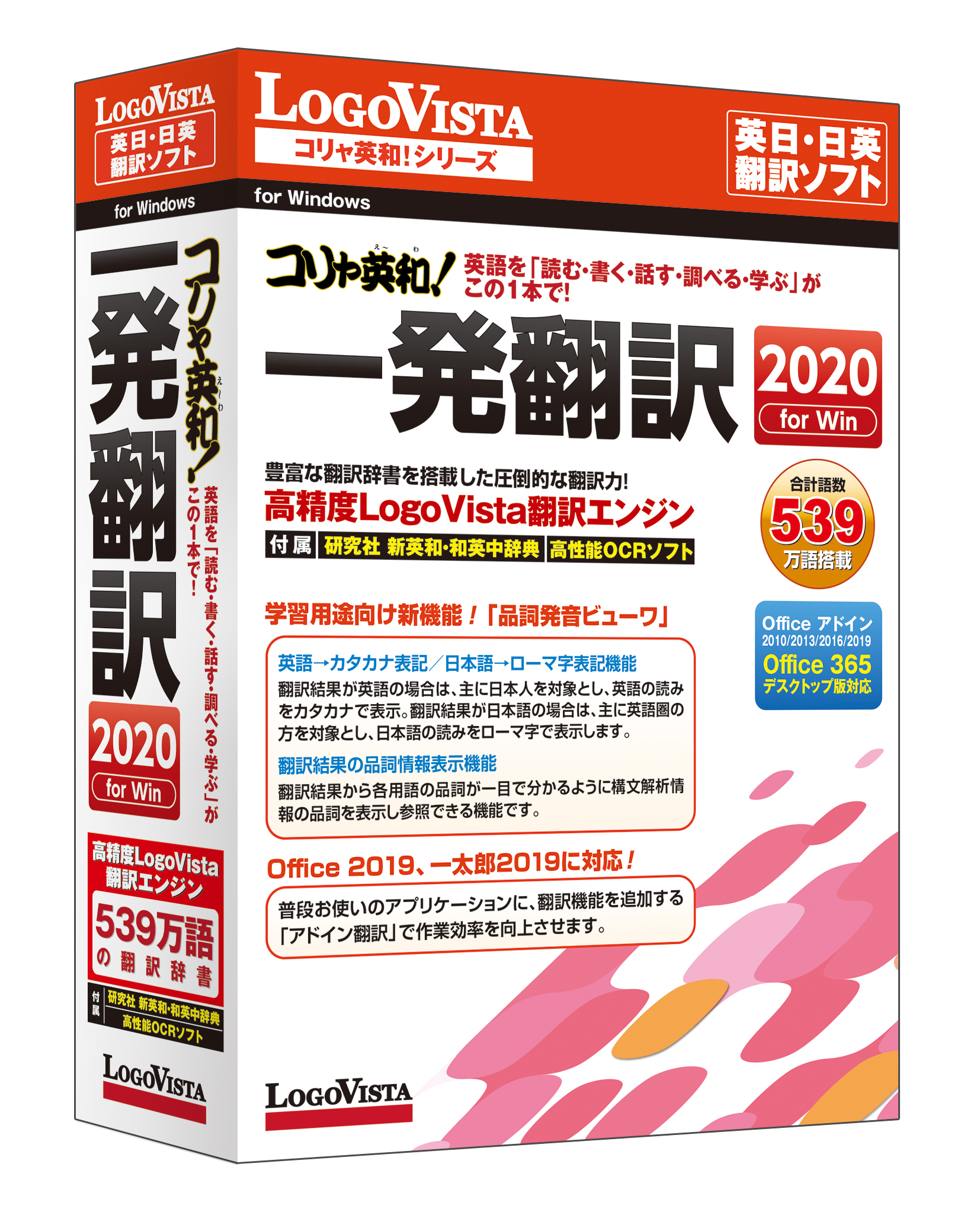 ロゴヴィスタ株式会社は、低価格翻訳ソフトの先駆けとして1994年に発売以来、翻訳ソフトのベストセラーのWindows用英日・日英翻訳ソフトの最新版「コリャ英和!一発翻訳 2020 for Win」シリーズを、2019年6月7日(金)より、パソコンショップ、カメラ系量販店、大手書店、ダウンロード販売サイトなどで発売します。