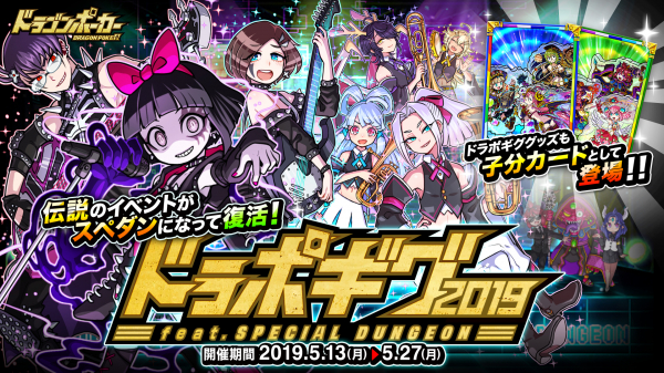 株式会社アソビズム(本社:東京都千代田区、代表取締役:大手智之)は、App Store・Google Playにて好評配信中のリアルタイム合体カードバトル『ドラゴンポーカー』で、2019年5月13日(月)より6周年記念スペシャルダンジョン「ドラポギグ2019 feat.SPECIAL DUNGEON」を開催いたします。今回のダンジョンでは「太郎バンド」や「エクソシストXIII」がボスモンスターとして登場!また、今回だけのスペシャルBGMも登場!一緒に冒険する仲間と一緒に伝説のイベントを楽しみましょう!