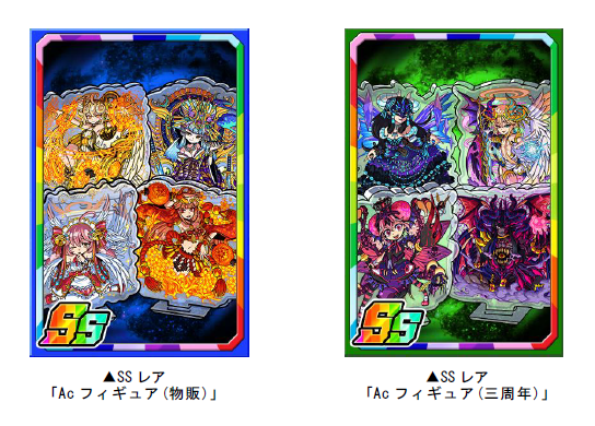 ダンジョンのボスモンスターを倒すと、まれに新たな限定子分カード「Acフィギュア(物販)」「Acフィギュア(三周年)」が手に入ります。限定子分カードは複数枚集めると進化ができ、子分スキルの効果が強力になります。