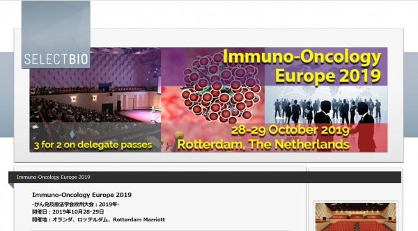 学会:「Immuno-Oncology Europe 2019-がん免疫療法学会欧州大会 2019年」
