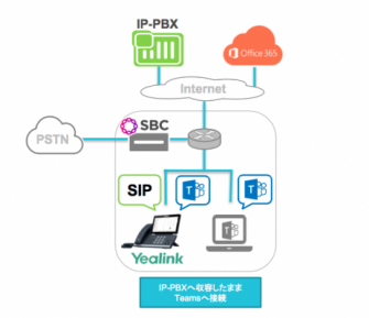 今回開発したソリューションに対応したYealink Microsoft Teams/SIPデュアルレジスト電話機は、Microsoft TeamsクライアントとSIPクライアントを同時に搭載しています。これまで困難であった、Microsoft TeamsとPBXの共存を実現します。TeamsとPBXの共存により双方が同時に利用出来る為、これまでハードルの高かった、既存のPBXからMicrosoft Teamsへのスムーズな移行が実現します。