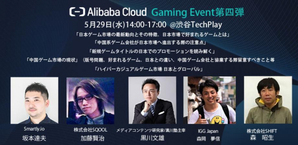 このイベントはAlibaba Cloudが日本で開催するセミナーイベント、「Alibaba Cloud GamingEvent」の第4弾で、SQOOLの加藤の他、メディアコンテンツ研究家の黒川文雄氏、Smartly.ioの坂本達夫氏、IGG Japanの森岡夢信氏、SHIFTの森昭生氏などが登壇する予定です。
