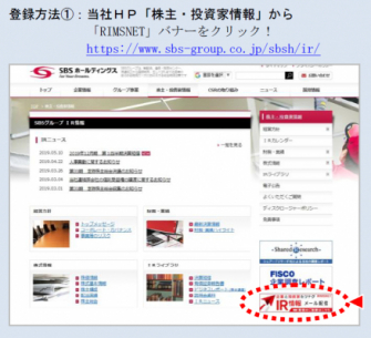 「RIMSNET」バナーをクリック! https://www.sbs-group.co.jp/sbsh/ir/