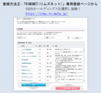 SBSホールディングスを選択し登録!https://rims.tr.mufg.jp/
