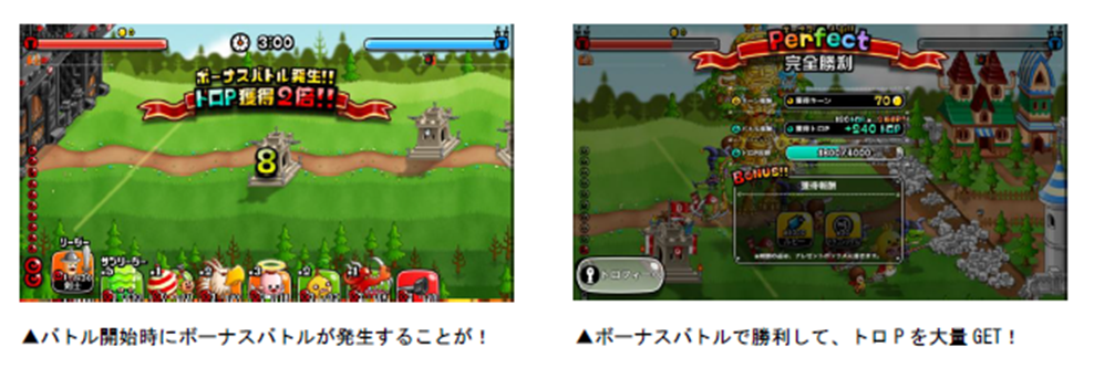各キャラのトロフィーは、「トロP」を一定数貯めると獲得することができます。トロPは「キャラのLvが20以上」「うまP200以上」など、各キャラによって異なる条件を満たした状態でバトルを行なうと獲得できます。また、バトルを開始すると「ボーナスバトル」が発生することがあり、バトルの勝敗に関係なく、獲得トロPが2・3・5・10倍のうちいずれかの倍率で増加します。ボーナスバトルが発生したら、勝利してトロPの大量獲得を目指しましょう!