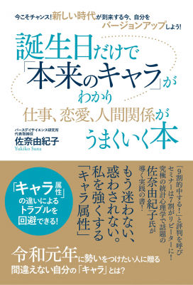 ゴマブックス株式会社(所在地:東京都港区、代表取締役社長:赤井仁)は、2019年5月1日(水)に、『今こそチャンス!新しい時代が到来する今、自分をバージョンアップしよう!誕生日だけで「本来のキャラ」がわかり仕事、恋愛、人間関係がうまくいく本』(佐奈由紀子=著)を単行本と電子書籍、POD(プリント・オン・デマンド)の3形態で発売。5月16日(木)にAmazon暦学カテゴリにて売れ筋ランキング1位を獲得いたしました。