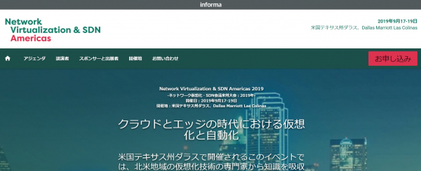 先端分野の市場情報を提供する株式会社グローバル インフォメーション(神奈川県川崎市、代表取締役社長:小野 悟)は、2019年9月17-19日 米国 テキサス州 ダラスにて開催されますInforma Telecoms & Media主催 国際会議 「Network Virtualization & SDN Americas 2019-ネットワーク仮想化・SDN会議米州大会 2019年」の代理店として参加のお申込み受付を5月21日より開始致しました。