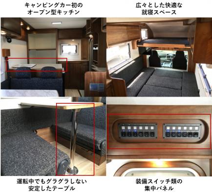 従来のキャンピングカーでは居住空間を犠牲にする設備もあり、レンタルユーザーにとっては利用目的に合わない設備が多くありました。年間、約1,500件を超すレンタル実績があるJapan C.R.C.では、レンタル利用をいただいたお客さまの様々なお声を基に「ご利用人数」や「居住空間の確保」に力を入れたレンタカー専用車両第2弾『ロビンソン 106(Robinson106)』の開発に至りました。
