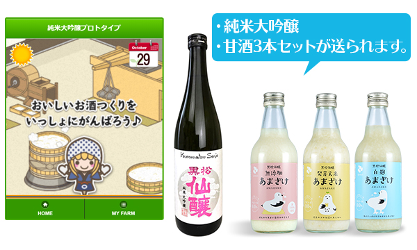 株式会社エルディ(東京都目黒区、代表取締役:宮﨑 尚登)はSake Base株式会社(千葉県千葉市)、株式会社仙醸(長野県伊那市)の協力のもと、株式会社エルディが運営するスマートフォンゲーム「畑っぴ」において仮想(バーチャル)農園内で日本酒を製造すると、株式会社仙醸から「黒松仙醸純米大吟醸プロトタイプ」「米麹甘酒」が自宅に届くサービスを2019年5月22日より開始しました。