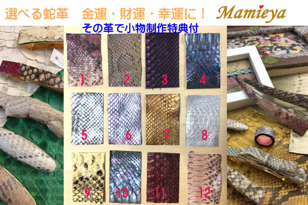 Mamieya小物作品を、ご購入された蛇革を使用してお作りします。