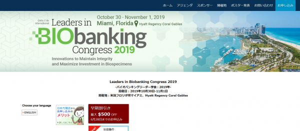 学会:「Leaders in Biobanking Congress 2019-バイオバンキングリーダー学会 2019年」