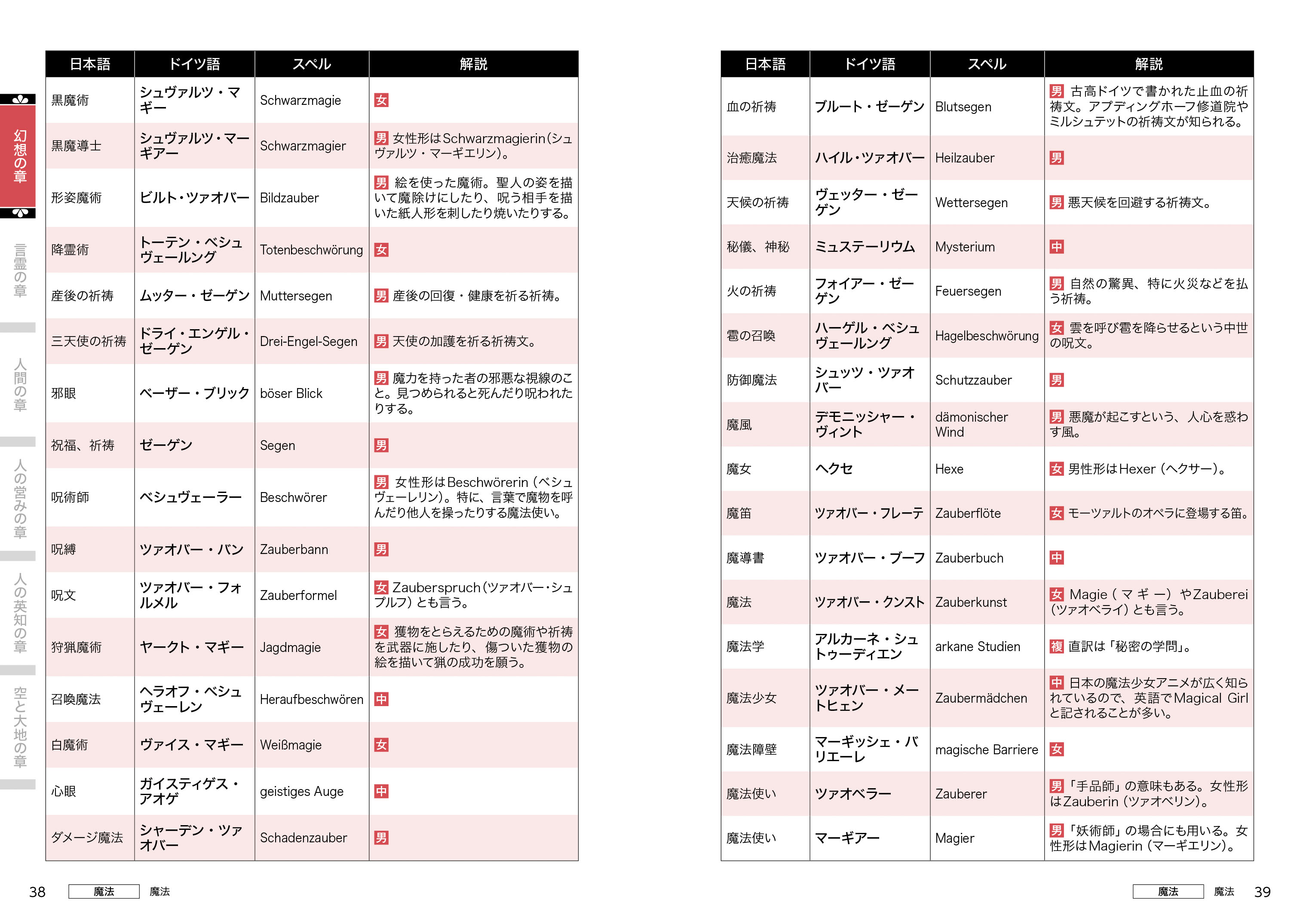 ●幻想の章……モンスター、武器、魔法、悪魔、天使に関するドイツ語