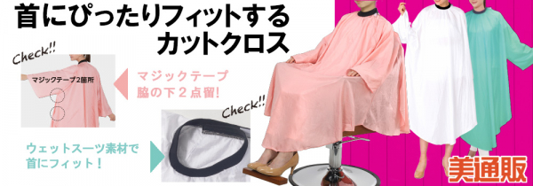 プロ向け美容材料の通信販売サイト「美通販」では、随所にサロンワークのニーズをしっかりと反映させた「首にぴったりフィットするカットクロス」を、サロンオーナー様が仕入れしやすい低価格設定にてご提供いたします。