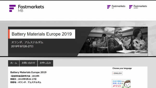 先端分野の市場情報を提供する株式会社グローバル インフォメーション(神奈川県川崎市、代表取締役社長:小野 悟)は、2019年9月26-27日 オランダ、アムステルダムにて開催されますFastmarkets主催 国際会議 「Battery Materials Europe 2019-電池材料会議欧州大会 2019年」の代理店として参加のお申込み受付を5月31日より開始致しました。