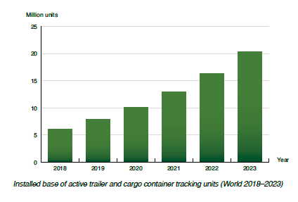 This study investigates the market for tracking and security of intermodal shipping containers, trailers, swap bodies, rail freight wagons, air freight unit load devices, cargo boxes and pallets. The installed base of remote tracking systems for these cargo loading units is forecasted to grow at a compound annual growth rate of 27.3 percent from 6.1 million units at the end of 2018 to 20.4 million units by 2023. Get up to date with the latest information about vendors, products and markets.