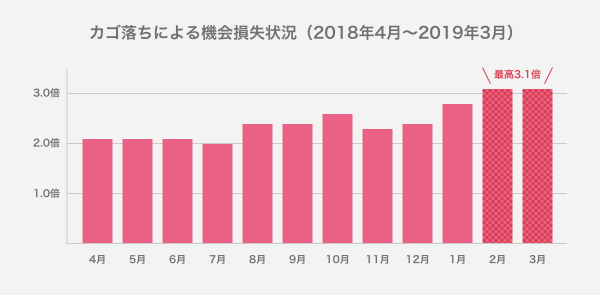 また、カゴ落ちによる機会損失額を調査したところ、平均で売上の約2.5倍にのぼることがわかりました。