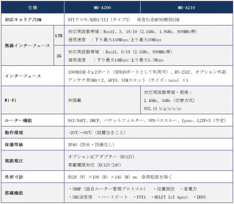 「MB-A200/210」は、累計8万台超の実績を誇る「MB-A100/110」の信頼性や機能はそのままに、複数のモバイル回線キャリアに対応するマルチキャリア化、リモート管理機能に対応しました。