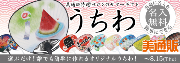 今回「美通販」の「オリジナルうちわ」キャンペーンでは、うちわの裏面に無料で「名入れ」をサービスいたします。簡単に貴店オリジナルのうちわを作成することができます。