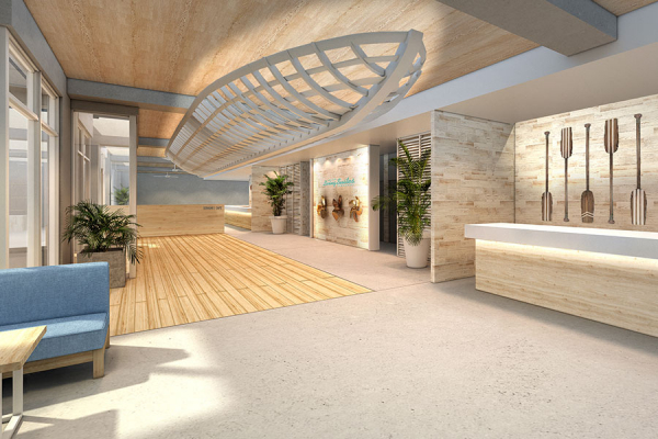 沖縄県国頭郡恩納村に新規オープンのホテル ロワジール リビングスイーツ瀬良垣のロビーにて、