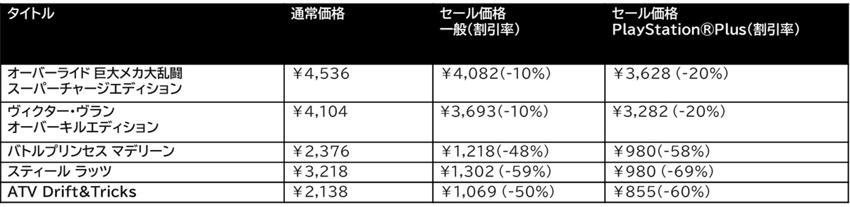株式会社3goo(サングー)(本社:東京都渋谷区、代表取締役:ディ コスタンゾ ニコラ)は、本日6月7日(水)よりスタートしたPlayStation(R)Store『Days of Play』セールにて、アクションゲーム5タイトルを最大69%OFFで販売いたします。『オーバーライド 巨大メカ大乱闘 スーパーチャージエディション』は発売後初のセールとなります。