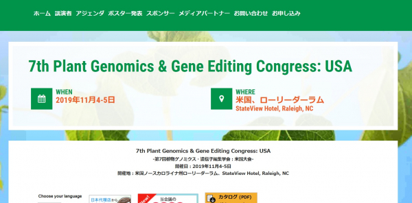学会:「7th Plant Genomics & Gene Editing Congress: USA-第7回植物ゲノミクス・遺伝子編集学会:米国大会」
