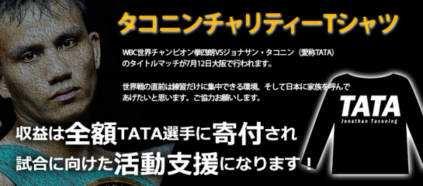 TEAM.EasyChange(http://team.easychange.jp/)では、TATA選手がアルバイトに時間を取られることなく、練習に集中して万全の状態でタイトルマッチに臨めるよう、チャリティーTシャツを