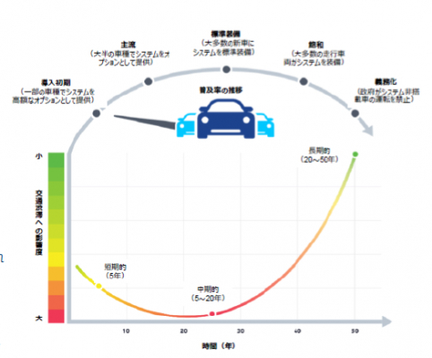 自動運転車は主にドライバー個人の利便性と安全性のために開発されています。しかし、自動運転車の導入は交通渋滞にも短期、中期、長期に渡り多大な影響を与えることになります。