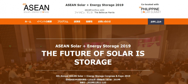 会議:「4th Annual ASEAN Solar + Energy Storage Congress & Expo 2019-第4回ASEAN太陽光発電+エネルギー貯蔵会議と展示会:2019年-」