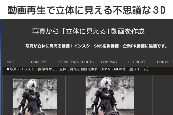 動画再生だけで、立体に見えるので、映像としてインパクトがあります。