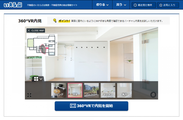 不動産業に特化した業務支援サービス『いえらぶCLOUD』を提供する株式会社いえらぶGROUP(本社:東京都新宿区、代表取締役:岩名泰介)は2019年6月12日、運営する不動産総合情報サイト『いえらぶ』の物件詳細ページにVRの掲載を開始しました。これにより、ユーザーはウェブ上でVR内覧が可能になり、効率的な物件探しが実現します。