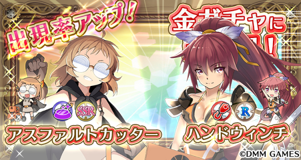 整地(紫)属性SSR「アスファルトカッター」、牽引(赤)属性R「ハンドウィンチ」が金ガチャに新登場!
