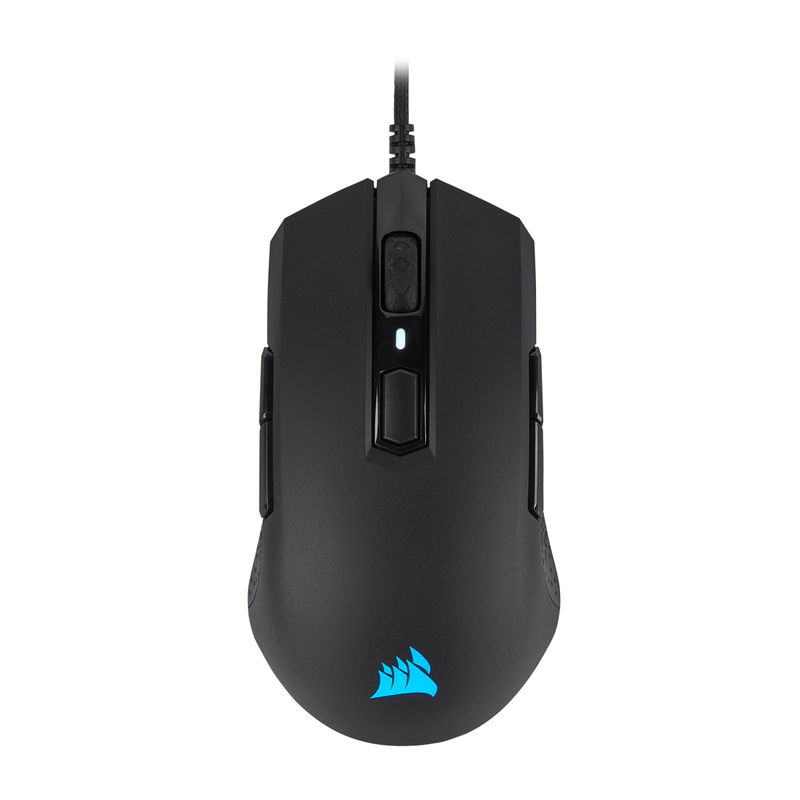 M55 RGB PROは、左右どちらの手でも使えるマルチグリップに対応、シンメトリーデザインのゲーミングマウスです。Pixart社製の超高精度PAW3327オプティカルセンサーを搭載、最大解像度12,400DPI対応、86gの超軽量コンパクト設計により素早いマウスコントロールを実現します。シンプルなプラグアンドプレイで、USBをつなぐだけですぐにゲーミングプレイを楽しむことができます。ドライバソフトiCUEにより、約1680万色のLEDバックライトカラーを独立設定可能な2つの動的RGBゾーン、強力なマクロと再マップを実現する8個のプログラマブルボタン、オンボードメモリの搭載によりドライバレスでプロファイルをロードすることができます。
