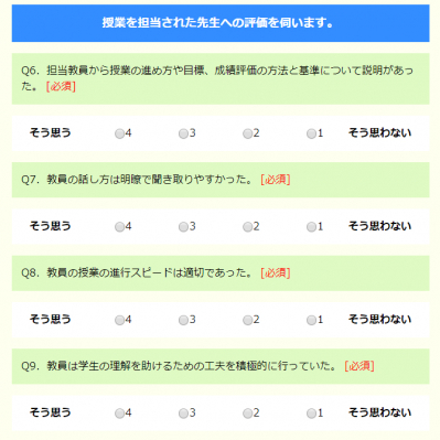 同校では、年間約7,800名以上の学生に実施していた「授業評価アンケート」を、紙から「WEBCAS formulator」を活用したWebアンケートに切り替えました。以前は回答データの入力および集計作業に膨大な時間を費やしていたほか、アンケート用紙や印刷にかかるコストがかさんでいましたが、WEBCASを導入したことで集計時間およびコストが従来の3分の1になりました。さらに、紙のアンケートに比べ回答の質が向上し、ご担当者様からは「学生たちの本音が聞けるようになり、授業の改善計画が立てやすくなった」と喜びのお声をいただいています。