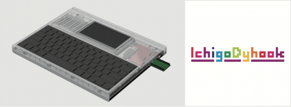「IchigoDyhook」はIchigoDakeでプログラミングを学習する際に必要なキーボードやモニタをひとまとめにした機器です。学校などから多く要望いただいている「IchigoIgai スクールセット」の量産型として現在販売準備を進めています。
