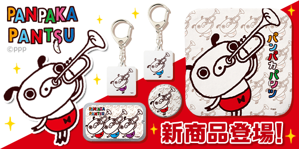 大好評販売中の「カワセル」での「パンパカパンツ」グッズ、待望の新商品が発売です。夏にぴったりなハンカチタオルや、7種類から選べるアクリルキーホルダー、ほかにも缶ケースやステッカーに缶バッジと、使いやすい小物類が大幅ラインナップしました。シックなデザインで普段使いにもばっちりのグッズとなっております。