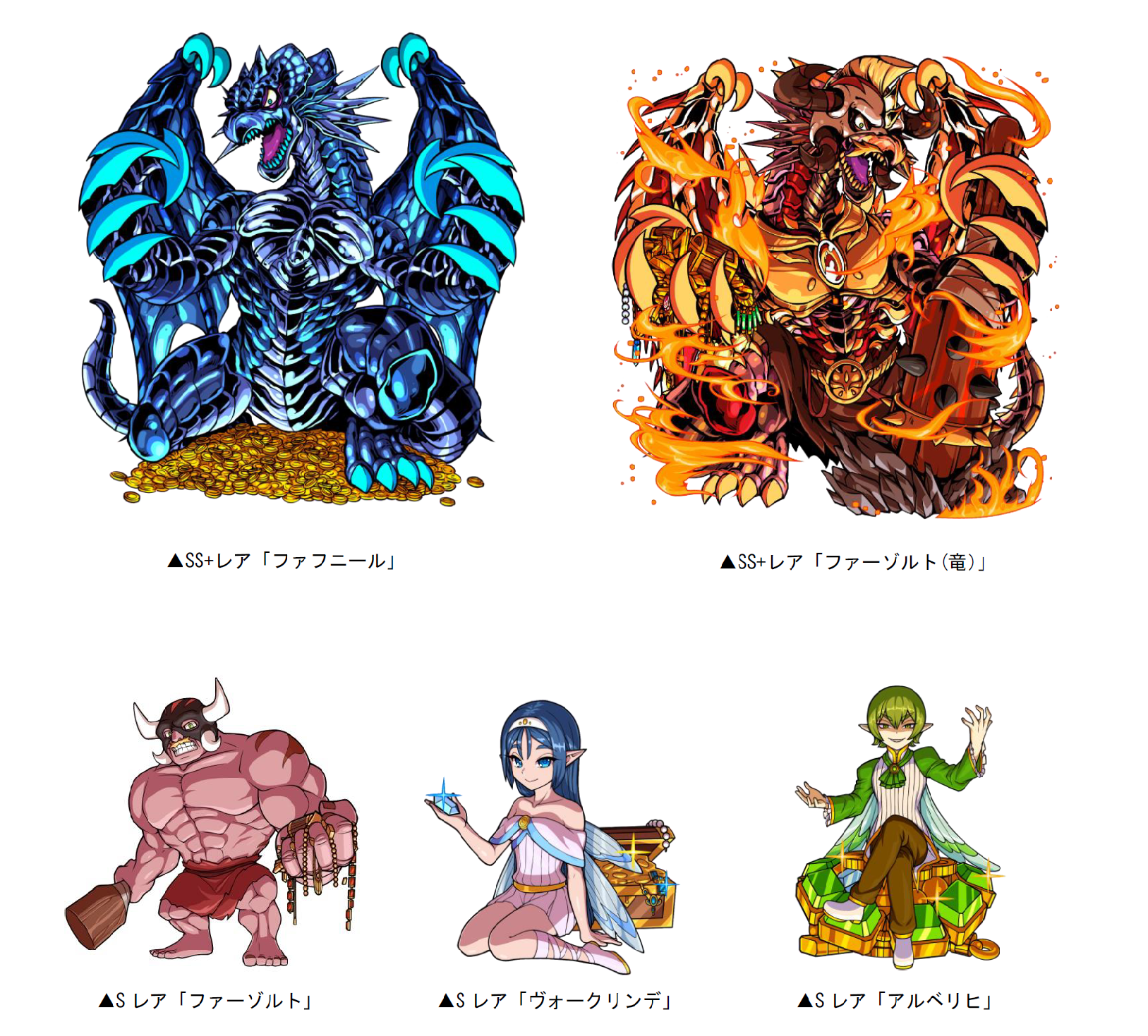 本ダンジョンをクリアした際に手に入る「ニーベルングP」を貯めると、SS+レア「ファフニール」「ファーゾルト(竜)」、Sレア「ファーゾルト」「ヴォークリンデ」「アルベリヒ」と交換することができます。