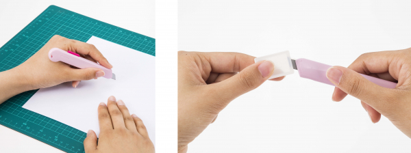 宅配段ボールの開梱や郵便物の開封など、利便性の高いカッターナイフですが、刃が見える外観や凹凸の多い形状は、女性にとって見た目にも手にもなじまず、家に眠ったまま使われていない、ということも多くありました。