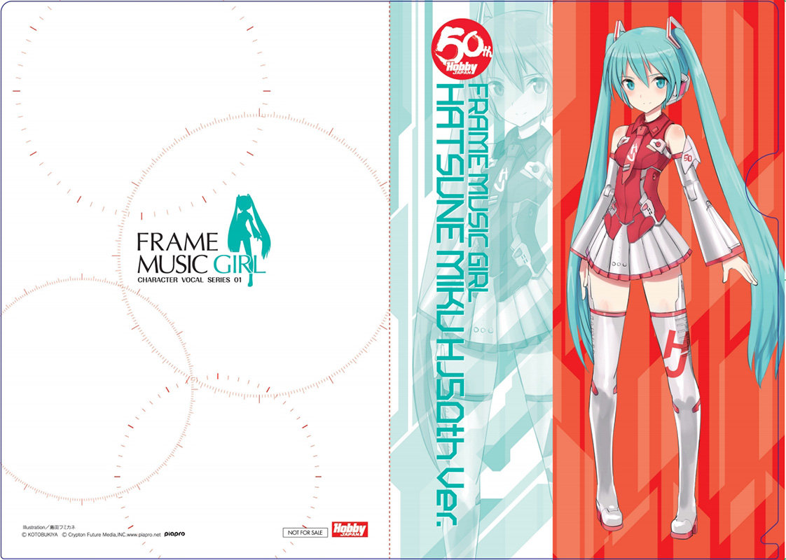 6月2日(日)に開催された「ホビージャパン半世紀祭り」にて、抽選による先行販売を行ったホビージャパン50周年記念アイテム「フレームミュージック・ガール 初音ミク HJ50周年Ver.」。ついに6月25日(火)より完全受注生産にて通販受付を開始しました! HJ 版ミクのカラーイラストをあしらった特製クリアファイルをもれなくプレゼントします!!(※ホビージャパンオンラインショップ、月刊ホビージャパン誌上通販購入時のみの特典です)